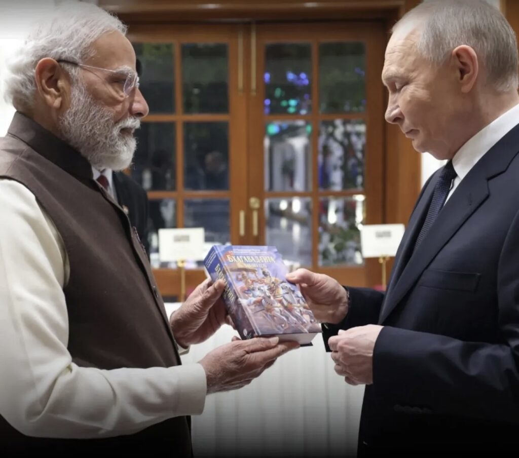 Modi handed Russian President Putin the Bhagavad Gita, calling it a timeless guide that inspires millions across the world.