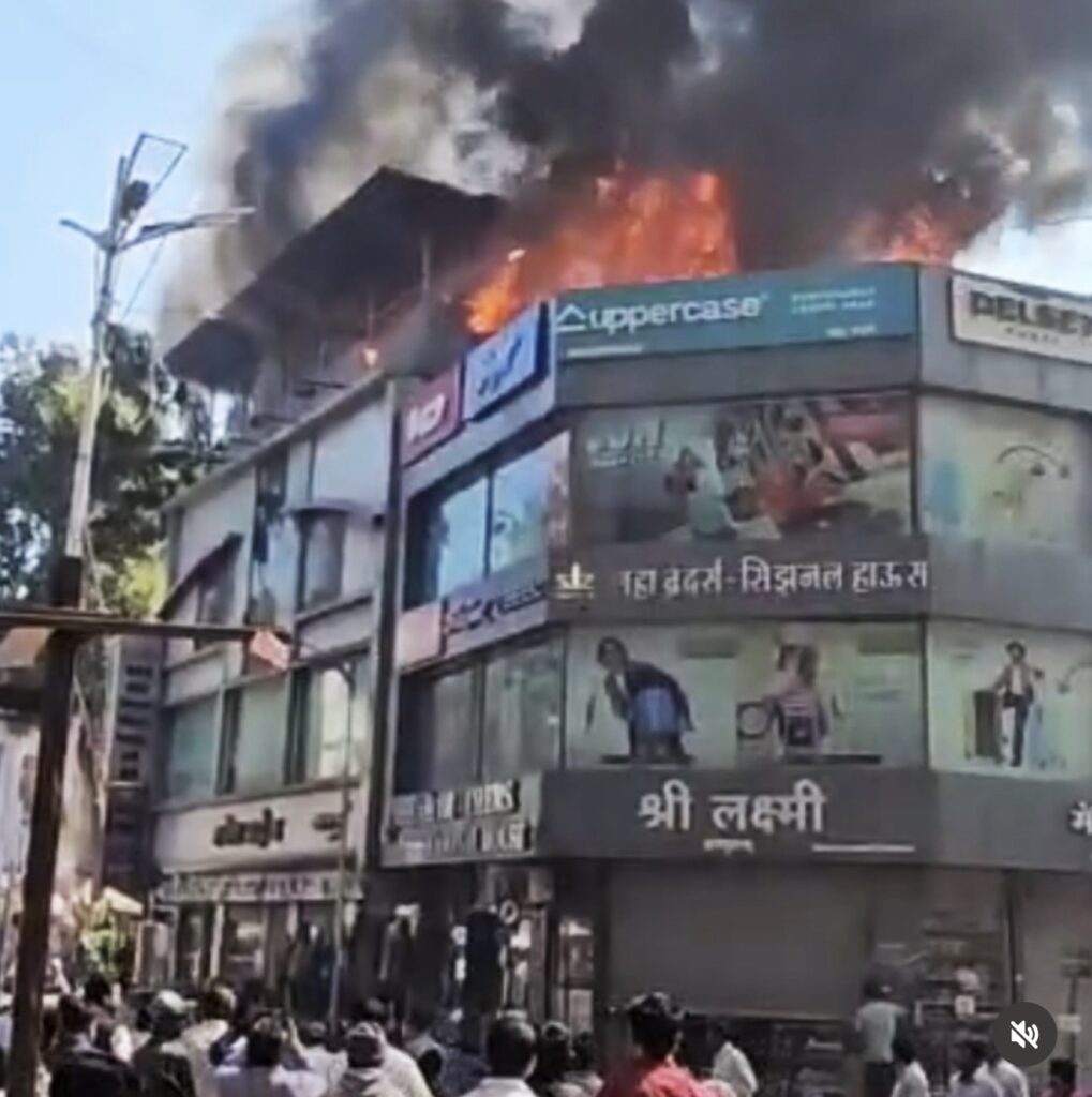 massive fire broke out in a shop at Sadashiv Peth, Pune, creating panic in the area. The exact cause of the fire is still unclear, and at least five fire tenders reached the spot to control the blaze.